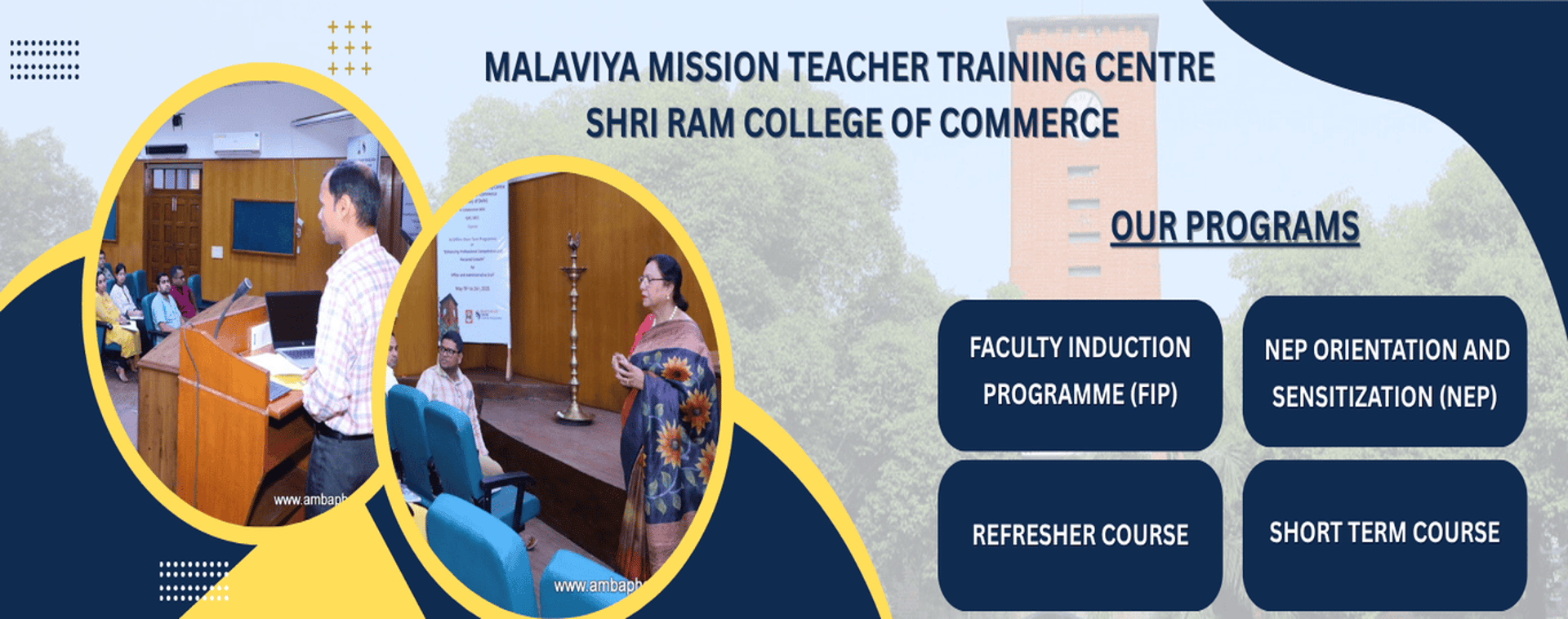 The Malaviya Mission Teacher Training Centre, Shri Ram College of Commerce (MMTTC, SRCC) was established in 2024 under the Malaviya Mission Teacher Training Programme (MMTTP) of the Ministry of Education, Government of India for the knowledge and skills upgradation, development and progression of faculty members, administration and research scholars of Colleges and Universities. The MMTTC, SRCC will implement the ideals of Malaviya Mission Teacher Training Programme (MMTTP) which aims to implement NEP recommendations, focusing on quality teaching, equity, online education, technology use, Indian language promotion, vocational education, and multidisciplinary education. The MMTTC, SRCC will address the needs of teachers in colleges/universities as determined by the UGC through: